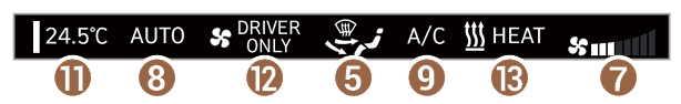 - DRIVER ONLY mode activated. In DRIVER ONLY mode, air conditioning or heating will be used only for the driver′s seat (if equipped).