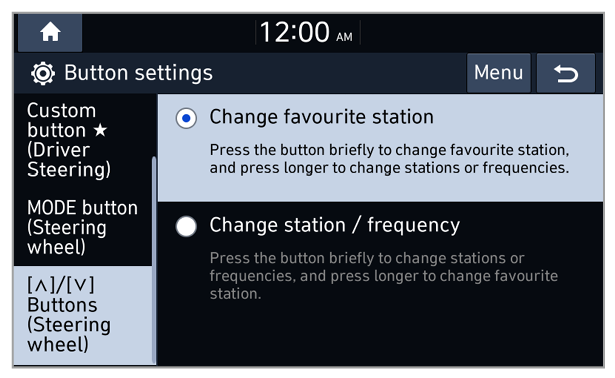 You can select radio/media functions to access when you press the Mode button on the steering wheel.