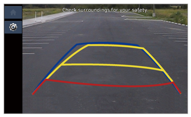 | Check the rear view while driving. On the screen, appears to indicate that the rear view is active. |