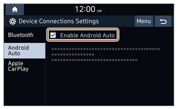 - On the Home screen, press All Menus > Android Auto or Phone Projection.