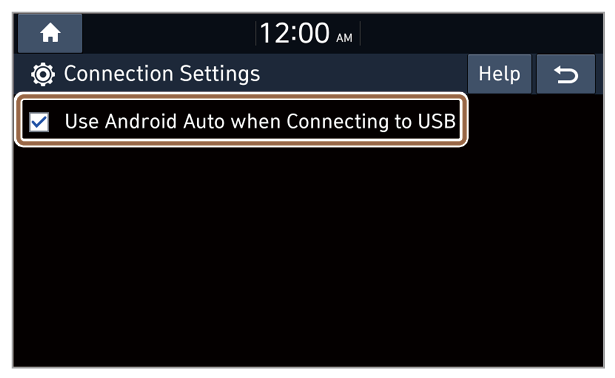 On the Home screen, press All Menus > Setup > Device Connections > Phone Projection > Menu > Connection Settings and press Use Android Auto when Connecting to USB to activate it.
