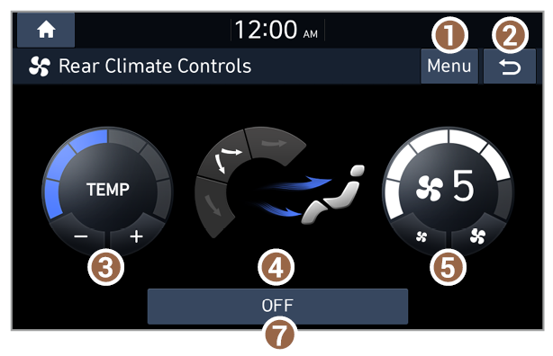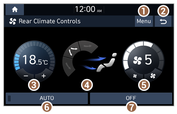 Press All Menus > Rear Climate Controls on the Home screen, or press the [REAR] button in your vehicle.