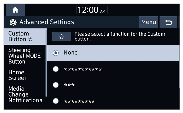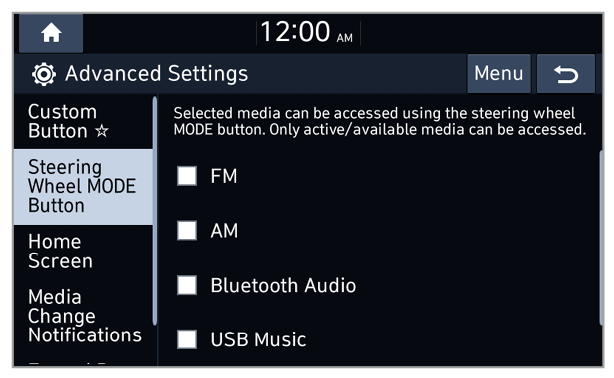 You can select radio/media functions to access when you press the Mode button on the steering wheel.