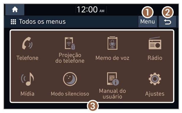 1. Também é possível pressionar e manter pressionado qualquer região da tela Todos os menus.