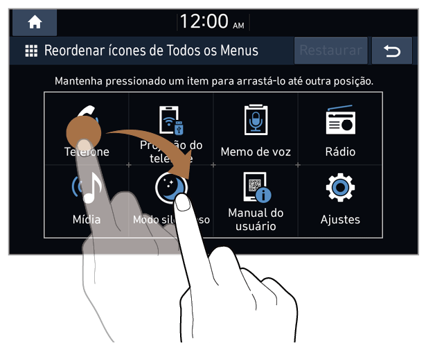 Pressione Restaurar para restaurar as configurações originais da ordem do menu.