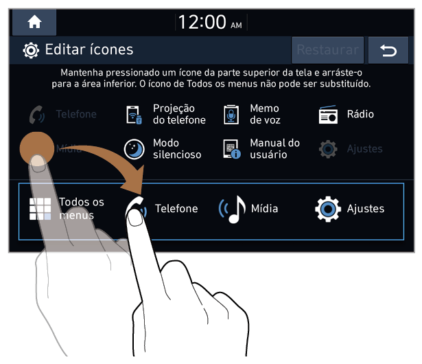 • O ícone Todos os menus não pode ser colocado em outro menu. Só é possível alterar sua posição.