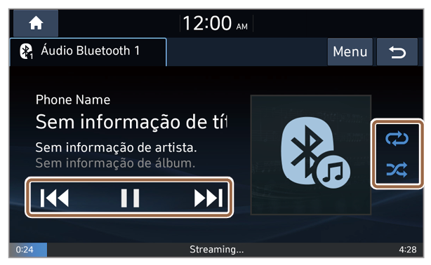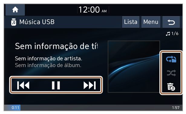 Use os botões na tela do reprodutor de mídia para controlar a reprodução de música.
