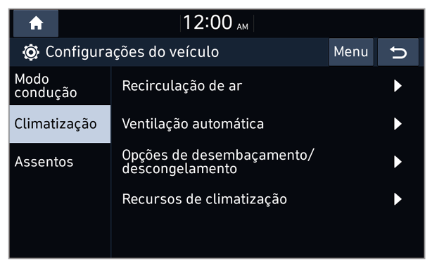 Você pode alterar as configurações relacionadas ao ambiente de condução do seu veículo.