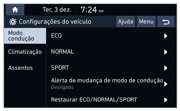 Restaurar ECO/NORMAL/SPORT (se equipado)