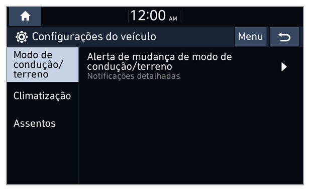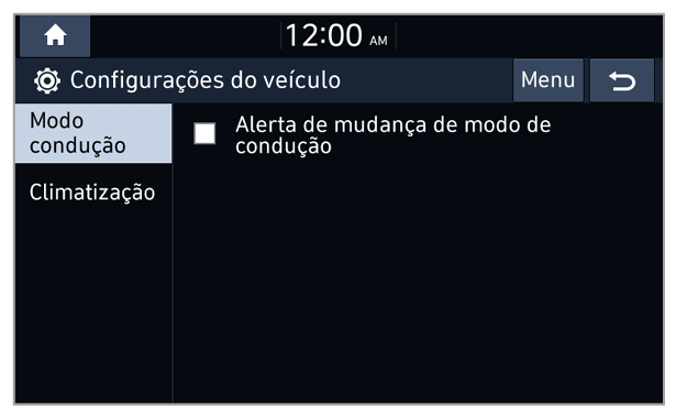 Você pode configurar para exibir uma notificação quando alterar o modo de direção do seu veículo.