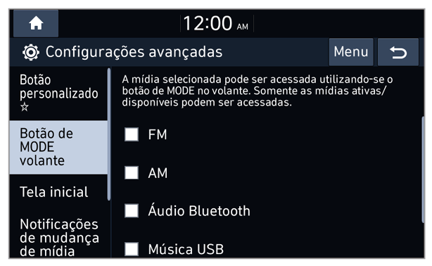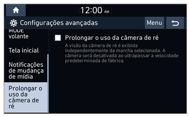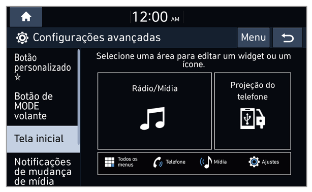 Na tela inicial, pressione Todos os menus > Ajustes > Avançado e selecione uma opção para alterar.