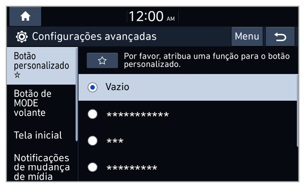 Você pode personalizar configurações avançadas do sistema, como notificações ou funções de botões.