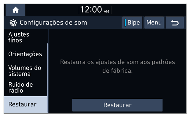 Você pode configurar o sistema para diminuir automaticamente o volume ao ser ligado, se o volume tiver sido ajustado para um nível muito alto.