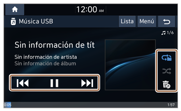 Utilice los botones de la pantalla del reproductor de multimedia para controlar la reproducción de música.