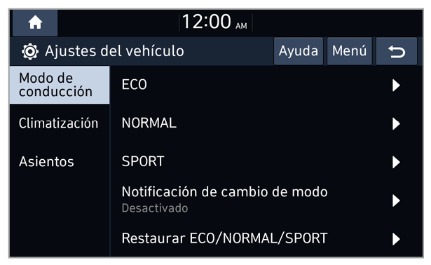 Restaurar ECO/NORMAL/SPORT (si está equipado)