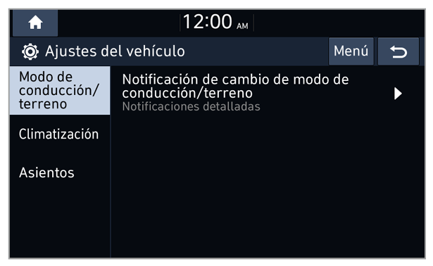 También es posible configurar para mostrar una notificación al cambiar el modo de conducción de su vehículo.