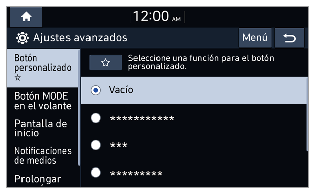 Puede seleccionar una función para acceder al presionar el botón personalizado en el panel de control.