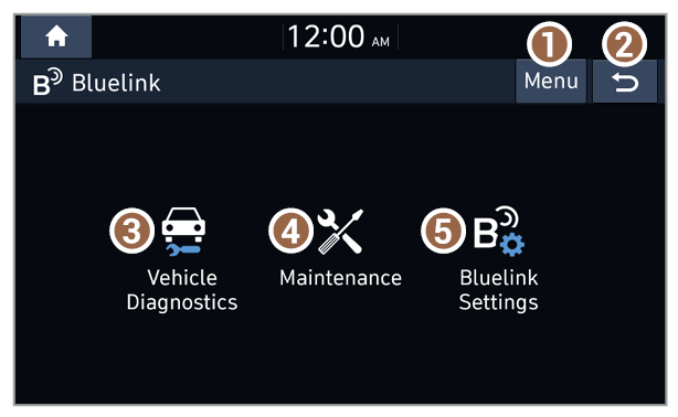 - On the Home screen, press All Menus > Bluelink > Maintenance.