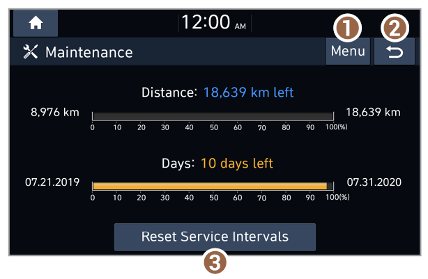 - You can view the driving distance and the number of days left until your next maintenance service.