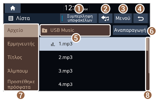 - Αναπαραγωγή όλων των αρχείων στον επιλεγμένο φάκελο ή κατηγορία.