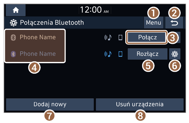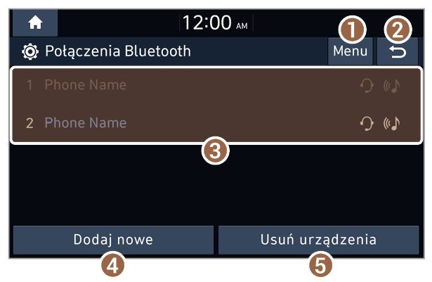 Jeśli nie chcesz już sparowanego urządzenia Bluetooth lub jeśli chcesz połączyć nowe urządzenie, kiedy lista urządzeń Bluetooth jest pełna, usuń sparowane urządzenia.