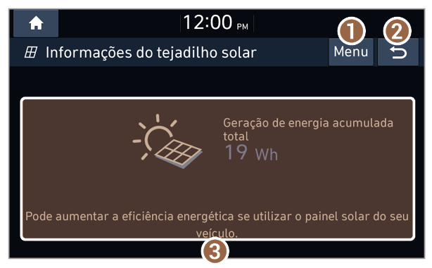 - No ecrã inicial, prima Todos os menus > Híbrido > Fluxo de energia > Informações do tejadilho solar.