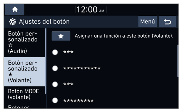 En la pantalla de inicio, pulse Todos los menús > Ajustes > Botón y seleccione la opción que desee modificar.
