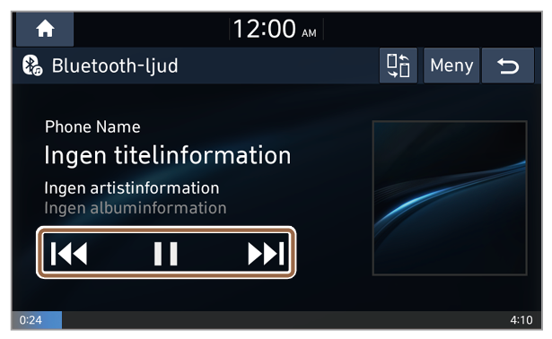 Använd knapparna på mediespelarens skärm för att kontrollera uppspelning av musik.