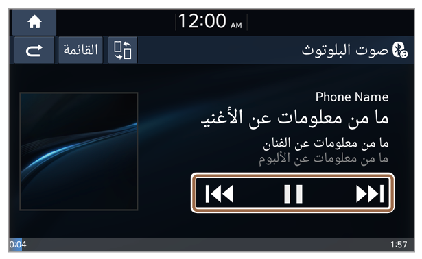استخدم الأزرار أسفل شاشة مشغل الوسائط للتحكم في تشغيل الموسيقى.