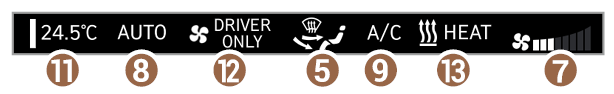 - DRIVER ONLY mode activated. In DRIVER ONLY mode, air conditioning or heating will be used only for the driver′s seat (if equipped).