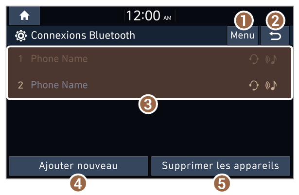 Stationnez votre véhicule dans un endroit sûr avant de connecter des appareils Bluetooth. Une conduite inattentive peut provoquer un accident et entraîner des blessures corporelles, voire la mort.