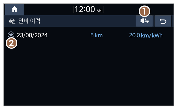 (연비 이력 목록에서만 사용 가능): 주행 기록을 삭제합니다.
