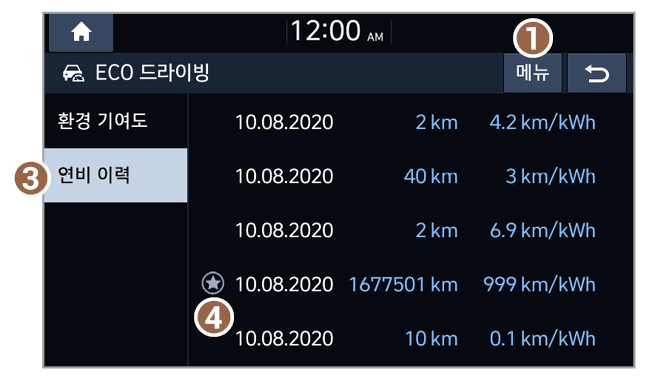 ECO 주행 정보를 확인할 수 있습니다.
