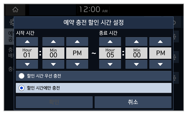 충전 할인 시간대와 할인 시간 우선 옵션을 설정한 후