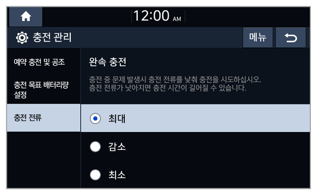 충전을 예약하거나 관련 옵션을 설정할 수 있습니다.