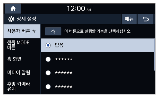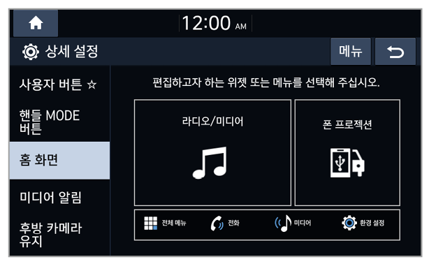 차종 및 사양에 따라 표시되는 화면이나 설정할 수 있는 항목이 다를 수 있습니다.