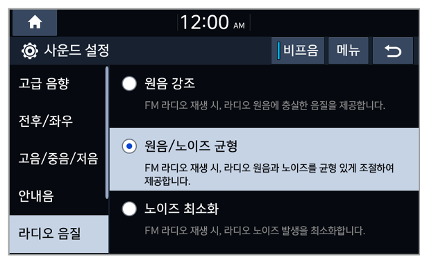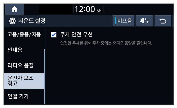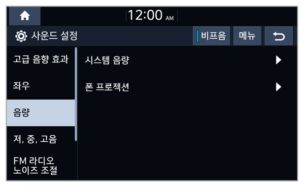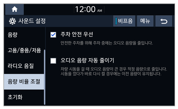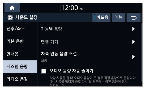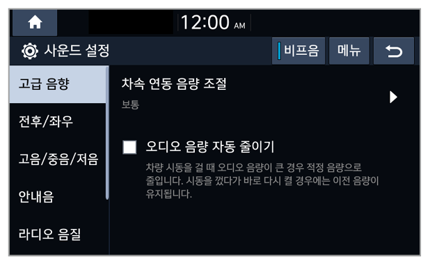 차량 시동 시 오디오 음량이 크게 설정되어 있는 경우, 자동으로 음량을 조절해 적정 음량을 출력하도록 설정할 수 있습니다.