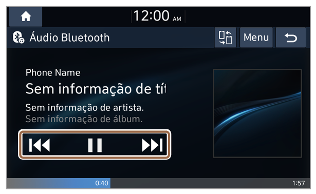 Use os botões na tela do reprodutor de mídia para controlar a reprodução de música.