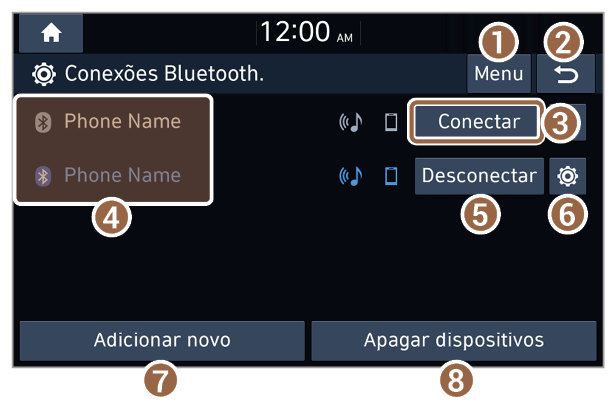 Estacione o veículo em um local seguro antes de conectar os dispositivos Bluetooth. Distrações ao dirigir podem causar acidentes de trânsito, lesões ou morte.