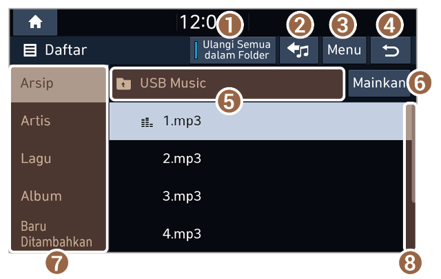- Memutar semua file di dalam folder atau kategori yang dipilih.