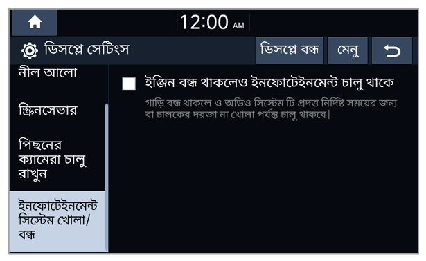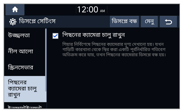 - Auto-illumination: সিস্টেমের উজ্জ্বলতা পরিবেষ্টিত আলোর অবস্থা বা হেডল্যাম্প স্ট্যাটাস অনুযায়ী সামঞ্জস্য করা হয়।