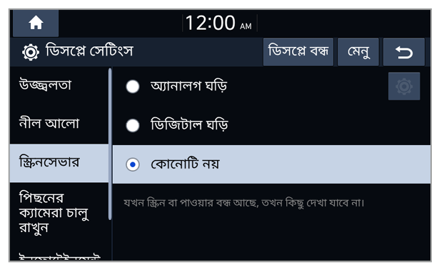 - Night: স্ক্রিনটি নিষ্প্রভ থাকবে।