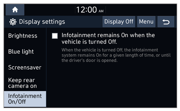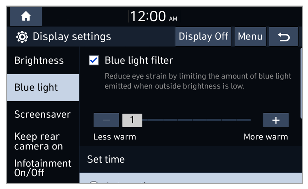 - Auto-illumination: The system brightness is adjusted according to the ambient lighting conditions or the headlamp status.