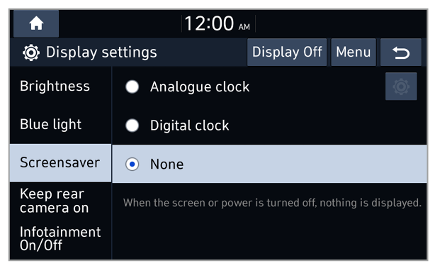 - Daylight: The screen will stay bright.