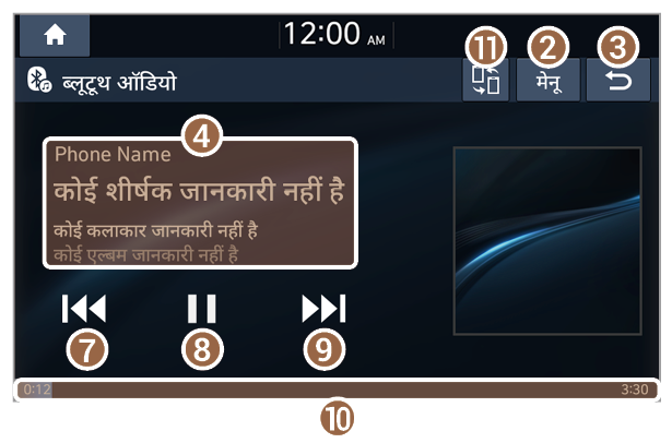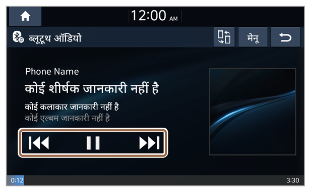 म्यूजिक प्लेबैक नियंत्रण करने के लिए मीडिया प्लेयर स्क्रीन पर बटन का उपयोग करें।