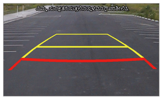 - ಪಾರ್ಕಿಂಗ್ ಸ್ಥಳದಲ್ಲಿ ವಾಹನವು ಸರಿಯಾದ ಸ್ಥಾನದಲ್ಲಿದೆಯೇ ನಿಮ್ಮ ವಾಹನದ ನಿರೀಕ್ಷಿತ ಮಾರ್ಗವನ್ನು ಸೂಚಿಸುತ್ತವೆ. ಪಾರ್ಕಿಂಗ್ ಸ್ಥಳದಲ್ಲಿ ವಾಹನವು ಸರಿಯಾದ ಸ್ಥಾನದಲ್ಲಿದೆಯೇ ಎಂದು ನಿರ್ಧರಿಸಲು ಮತ್ತು ಮುಂದಿನ ವಾಹನಕ್ಕೆ ತುಂಬಾ ಹತ್ತಿರದಲ್ಲಿ ನಿಲುಗಡೆ ಮಾಡುವುದನ್ನು ತಡೆಯಲು ಇದು ನಿಮಗೆ ಸಹಾಯ ಮಾಡುತ್ತದೆ. (ಅರ್ಹವಾಗಿದ್ದರೆ)