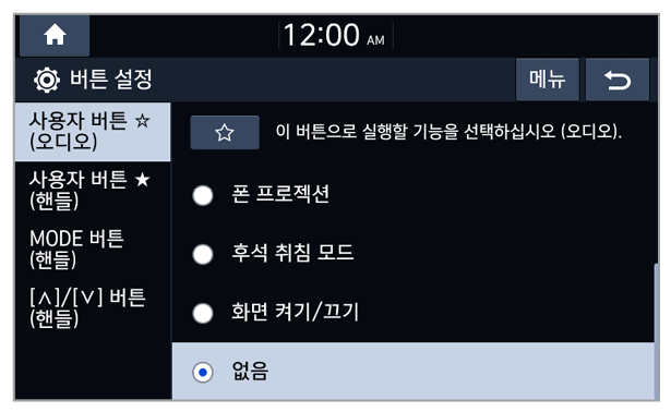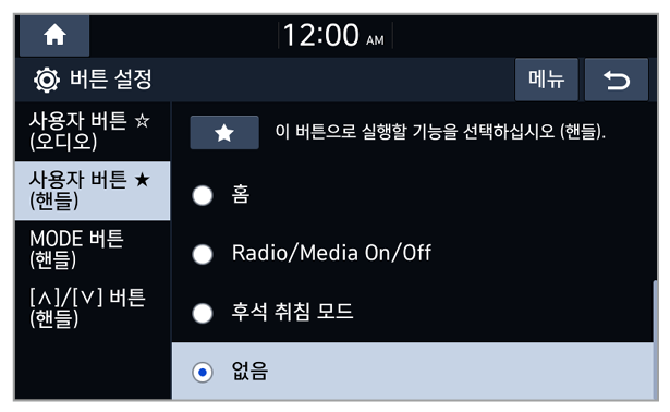 스티어링 휠의 사용자 버튼을 눌러 실행할 기능을 선택할 수 있습니다.
