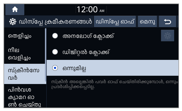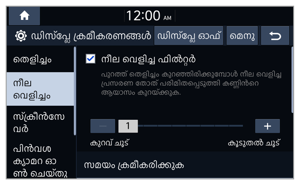 Dimming ഓപ്ഷനിൽ Daylight തിരഞ്ഞെടുക്കുമ്പോൾ പകൽ മോഡിനായി സ്ക്രീൻ തെളിച്ചം ക്രമീകരിക്കാം.