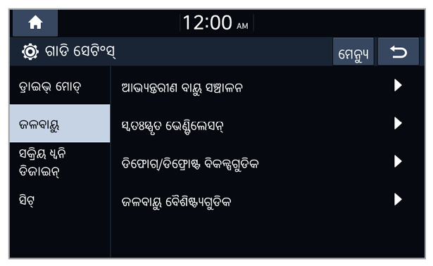 ଯେତେବେଳେ ଗାଡିରେ ବାୟୁ ଷ୍ଟଫି ହୋଇଥାଏ ସେତେବେଳେ ଏକ ଆରାମଦାୟକ ପରିବେଶ ବଜାୟ ରଖିବା ପାଇଁ ଆପଣ ସ୍ୱୟଂଚାଳିତ ଏୟାର ଭେଣ୍ଟିଲେସନ୍ ସକ୍ରିୟ କରିବାକୁ ସିଷ୍ଟମ୍ ସେଟ୍ କରିପାରିବେ।