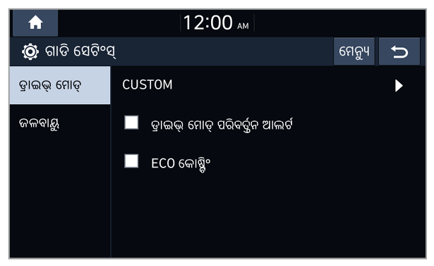 - କାର୍ବନ ଡାଇଅକ୍ସାଇଡ୍ ହ୍ରାସ (ଯଦି ସଜ୍ଜିତ): ଗାଡିରେ କାର୍ବନ ଡାଇଅକ୍ସାଇଡ୍ ଘନତା ବୃଦ୍ଧି ହେଲେ ସ୍ୱୟଂଚାଳିତ ଭାବରେ ଗାଡିରୁ ବାୟୁ ବାହାର କରିବାକୁ ସେଟ୍ କରନ୍ତୁ।